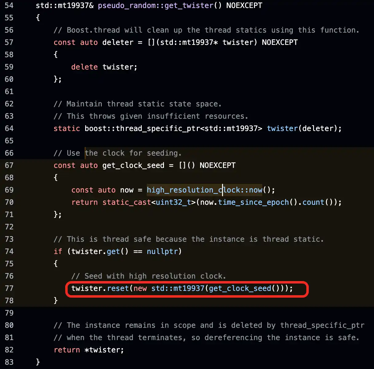 第一步:选择相同的伪随机数生成器(PRNG)MT19937 来生成随机数。再次强调,该 PRNG 完全不具备密码学安全性。