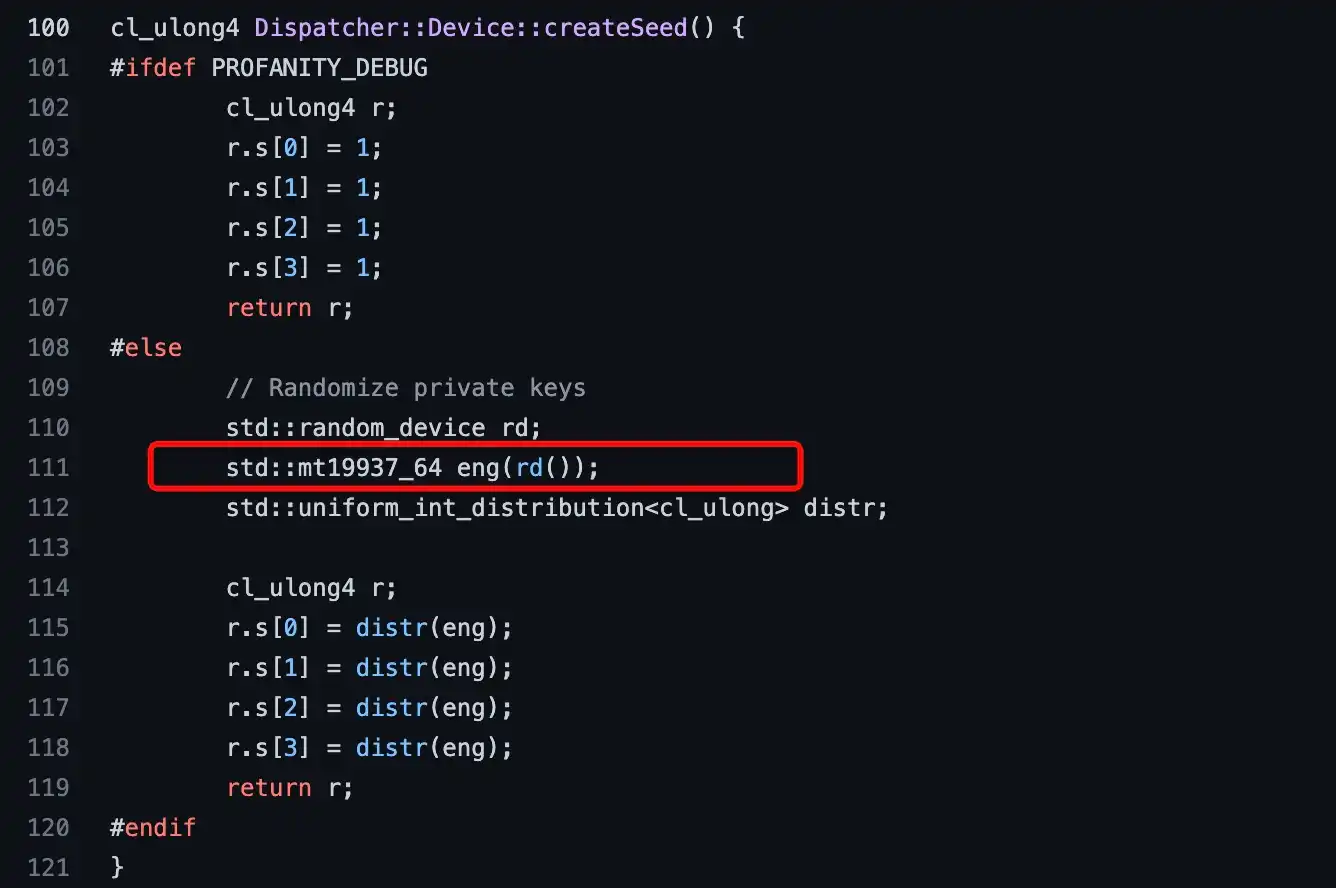 2022 年 9 月 20 日,知名做市商 Wintermute 遭遇重大安全事故,约 1.6 亿美元的数字资产被盗 [2]。攻击者巧妙利用了地址生成工具 Profanity 的弱点——该工具在部分用法中依赖 Mersenne Twister(MT19937)作为伪随机数源来生成「靓号地址」。