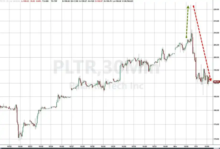 具体来看,两大事件直接引爆了对散户热门股的抛售。首先是 Palantir 的财报引发了对其增长前景的担忧。