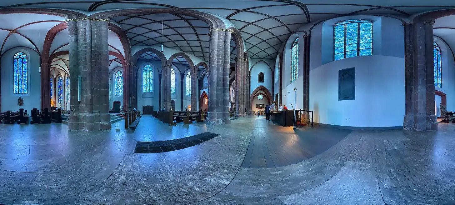 全景照片来自 St. Stephan』s Church of Mainz,其中整个教堂蓝色彩绘玻璃的作者是夏加尔。
