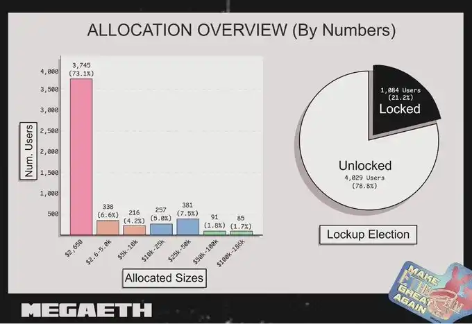 实际筛选结果为:在 49,976 个非锁仓参与者中,共有 5,031 个钱包通过筛选,录取率约为 10.1%。即使是最低分配额度,竞争也非常激烈。我们信任算法的判断,也清楚地知道,即使某些用户在 MegaETH 上有大量活动和持仓,如果其他指标较弱,也可能无法入选。但这是一个公平的机制,我们尊重结果。