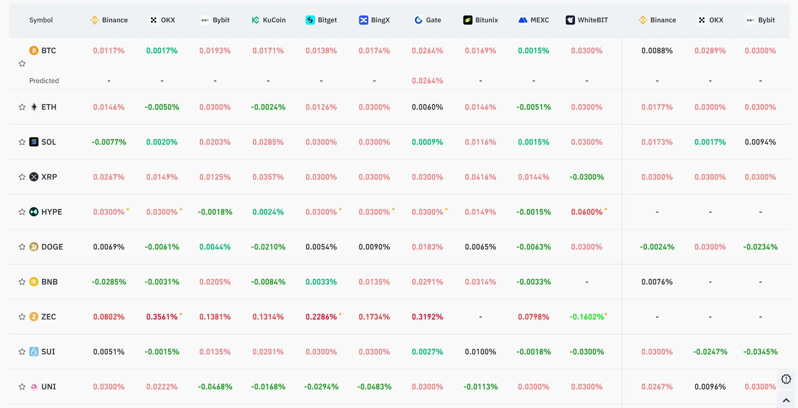 每日市场整体资金热度(根据资金费率反映)与代币解锁