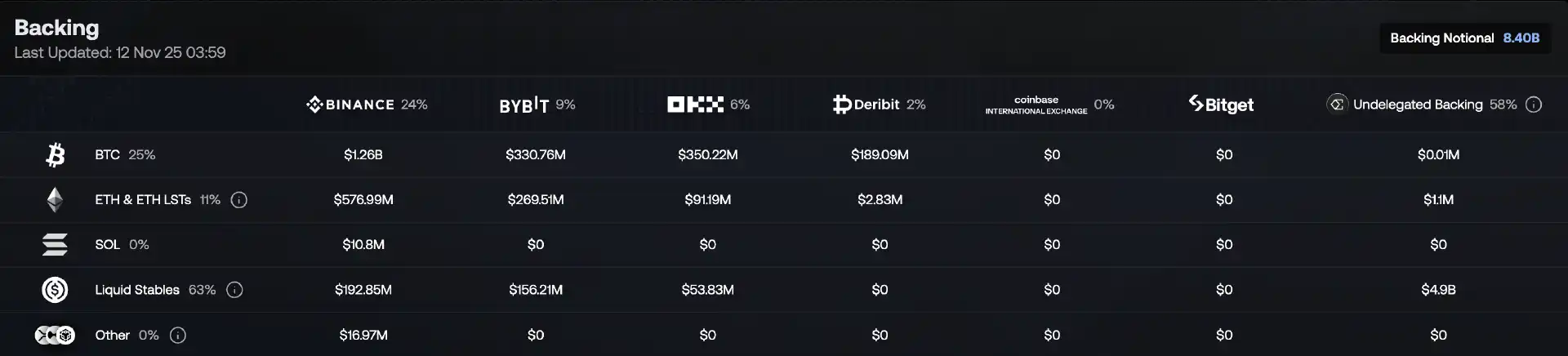 第二点则是前文提到的 ADL 致使中性策略失衡的问题。传闻 Ethena 与部分交易所签有 ADL 豁免协议,但此事始终未能证实,所以暂且不提。可即便没有豁免条款,Ethena 实质上也较难受到 ADL 影响。因为从其公开策略中能看出 Ethena 基本只选择了 BTC、ETH、SOL 作为对冲资产(BNB、HYPE、XRP 占比极小),这三大资产在 10 月 11 日大暴跌中的波动本就较小,对手方的承载能力也更大,而 ADL 实际上更容易出现在波动更大、对手方承载能力较小的山寨币市场,因此当下暴雷的往往是那些不够透明的协议(可能策略相较规划过于激进,甚至完全不中性)。
