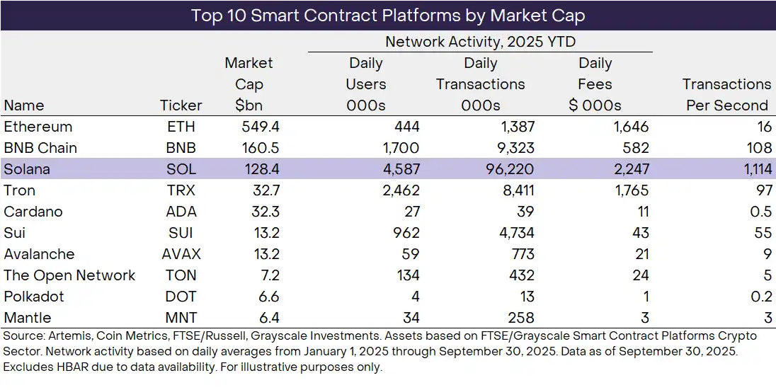 灰度认为:Solana 在愿景上表现为一个「面向所有人开放的快速、低价的区块链」。但其特定的设计为其竞争对手在某些用例中抢占或保留市场份额留下了空间。