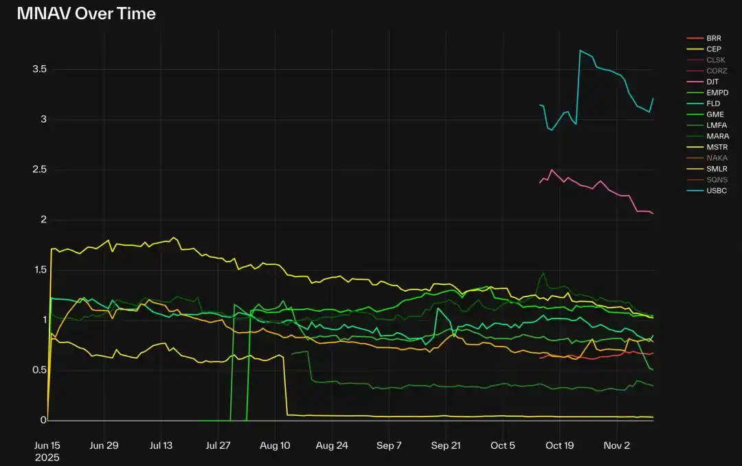 市值与 NAV 关系提供 DAT 领域最受关注指标:mNAV (NAV 倍数 )
