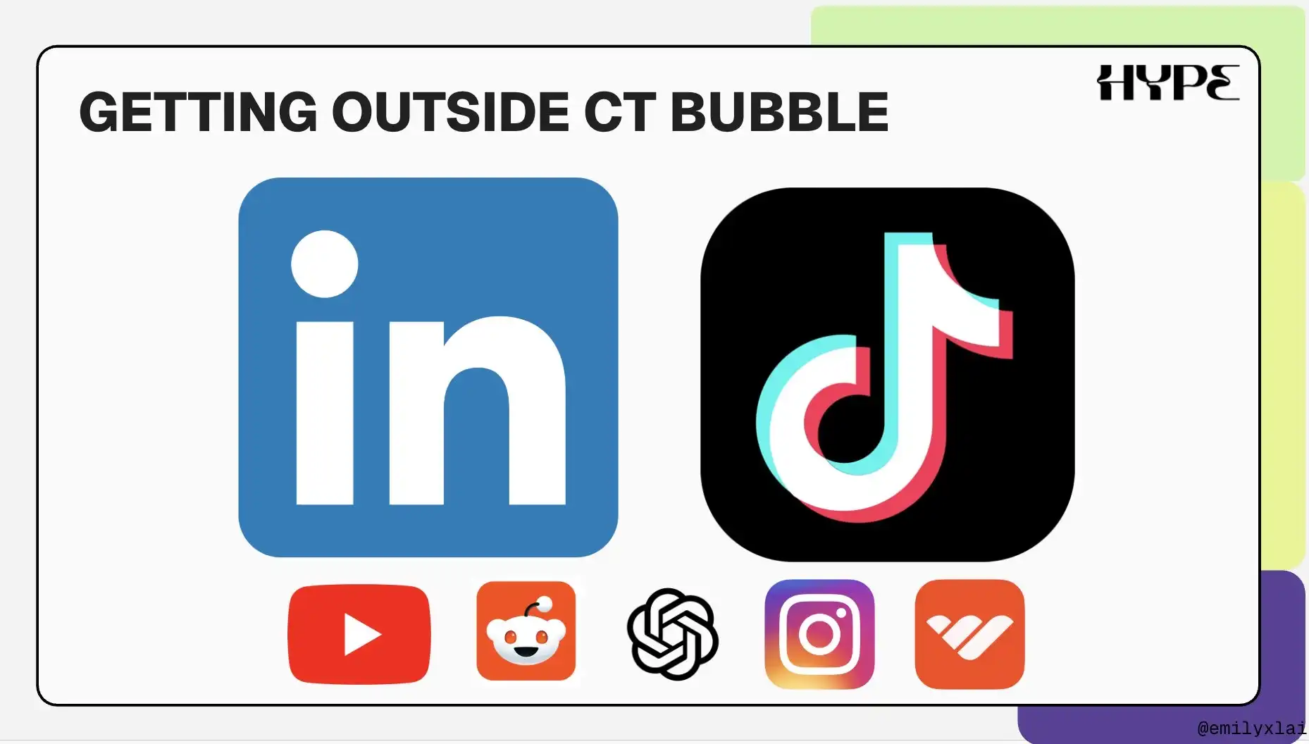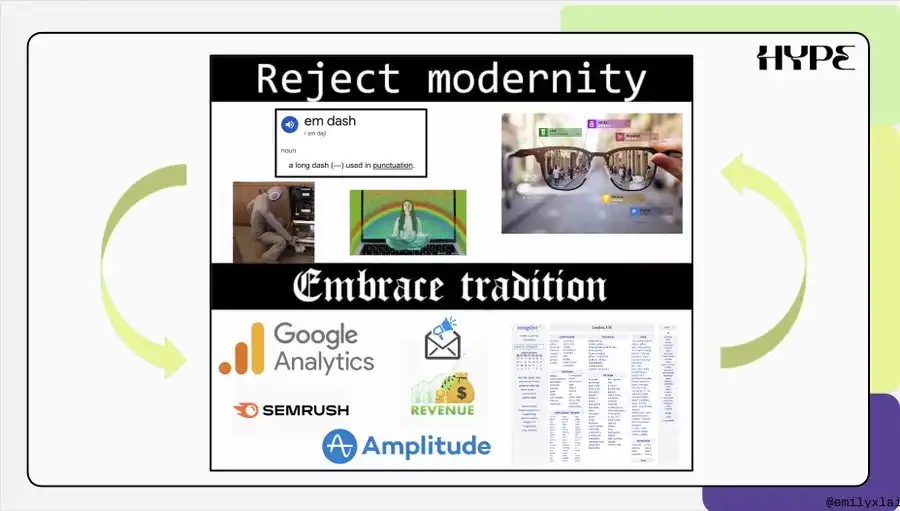 今年在 Hype,我们探索(并重新探索)了新的渠道,包括 YouTube、Reddit、AI SEO(如 Perplexity、GPT)、Instagram 和 Whop。在演讲中,我重点介绍了 LinkedIn 和 TikTok。
