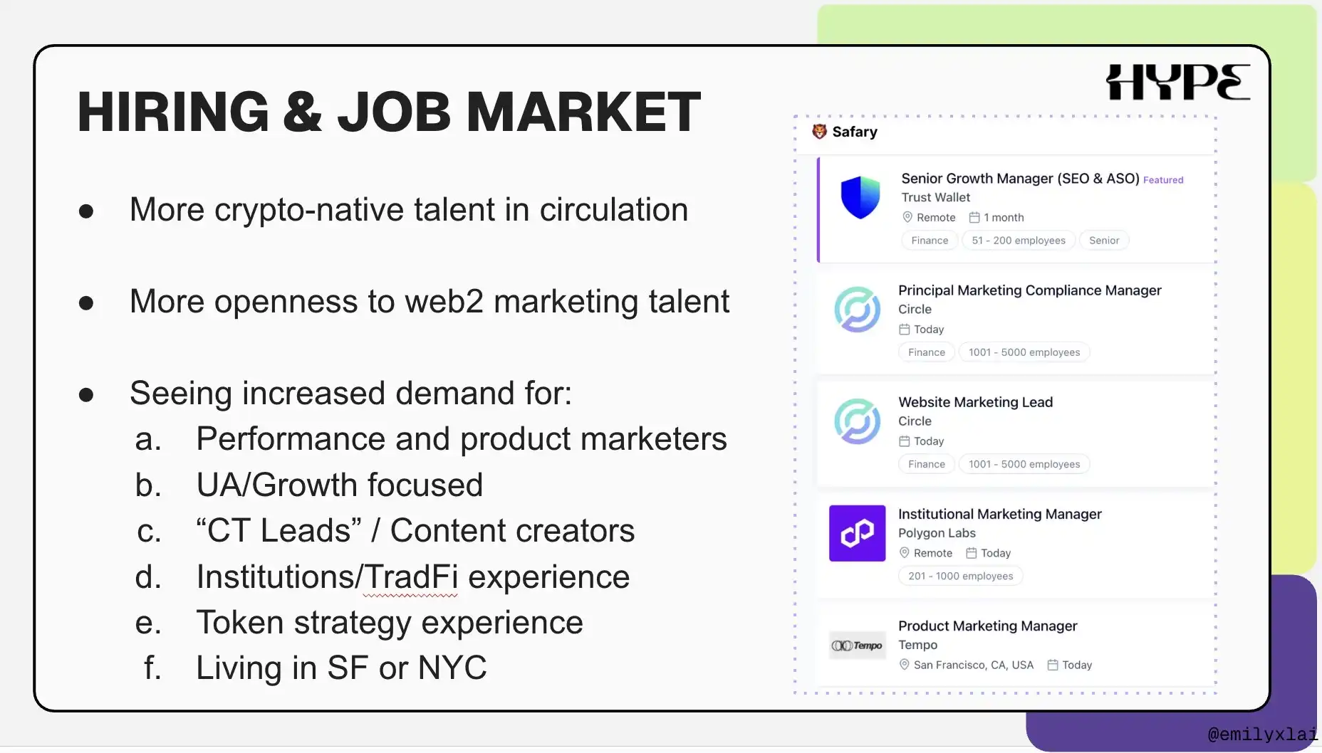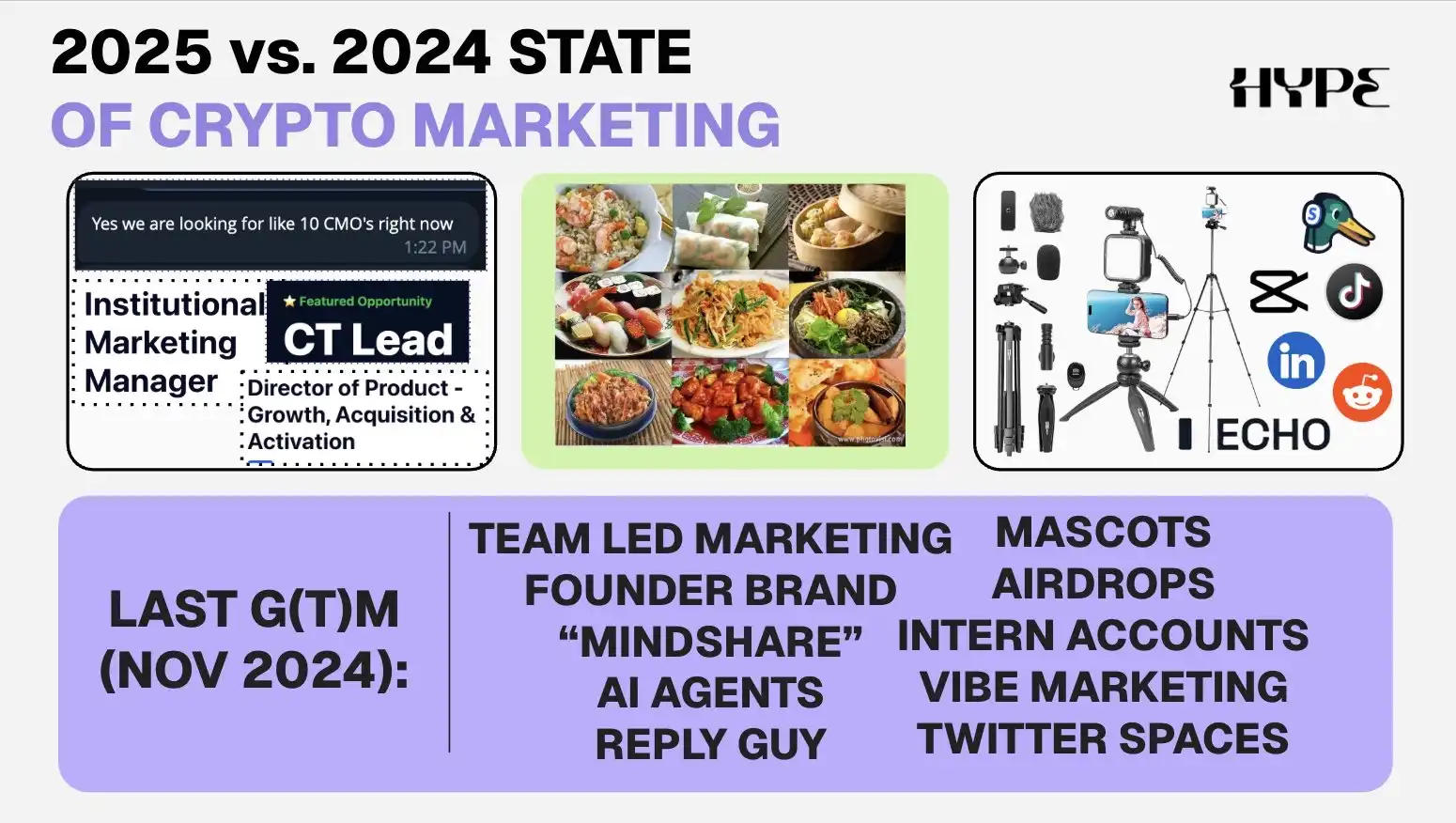 对于没有 Web2 营销经验的初级营销人员来说,门槛比以往更高,因为市场上流通的加密原生人才越来越多(想想过去四年里那些失败或流失的生态系统)。