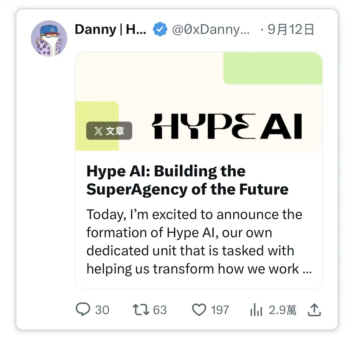 今年 9 月,我们成立了 Hype AI 部门,由 @antefex_moon(我们的 AI 副总裁)领导。更多详情可查看 CEO @0xDannyHype 的介绍。
